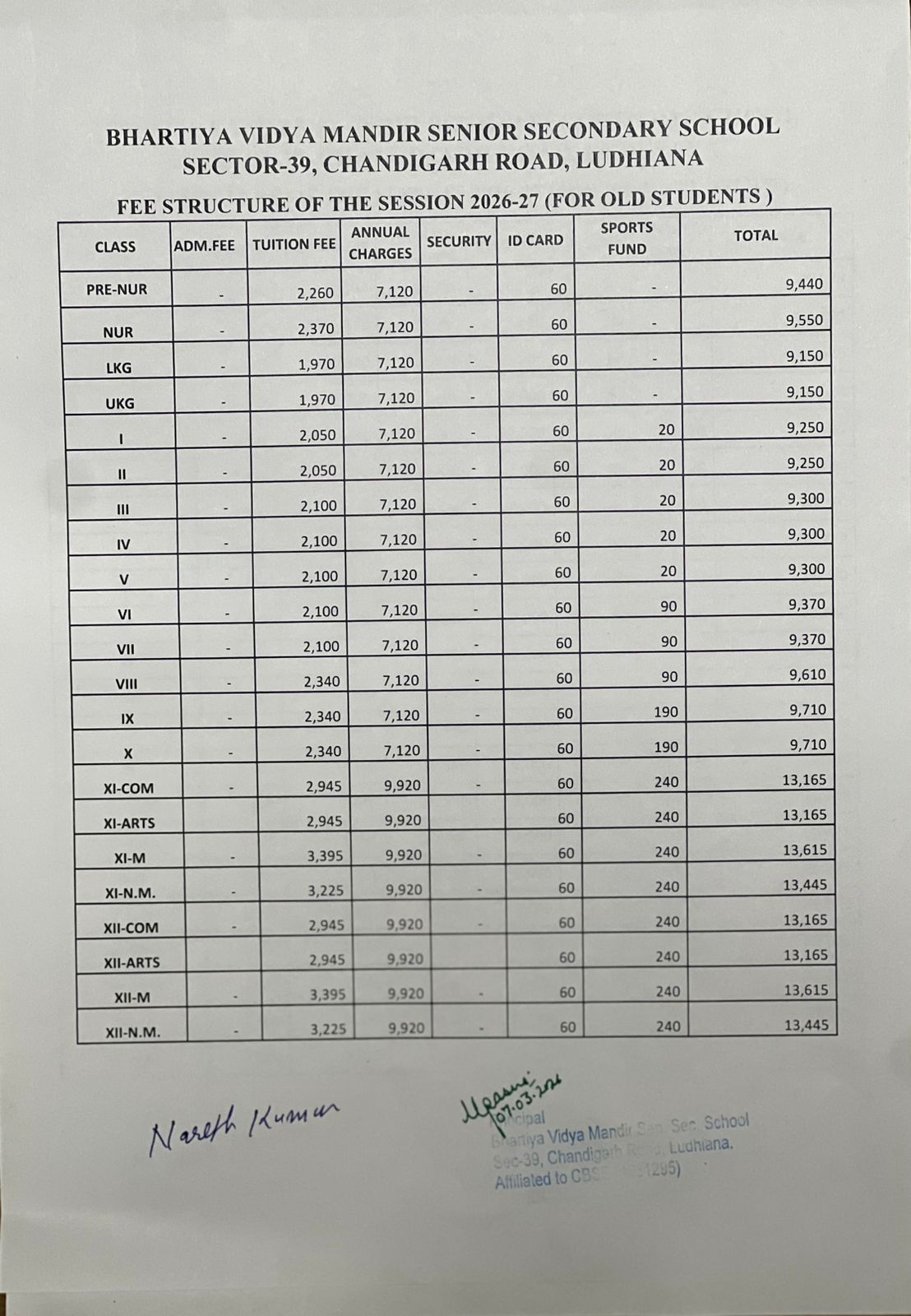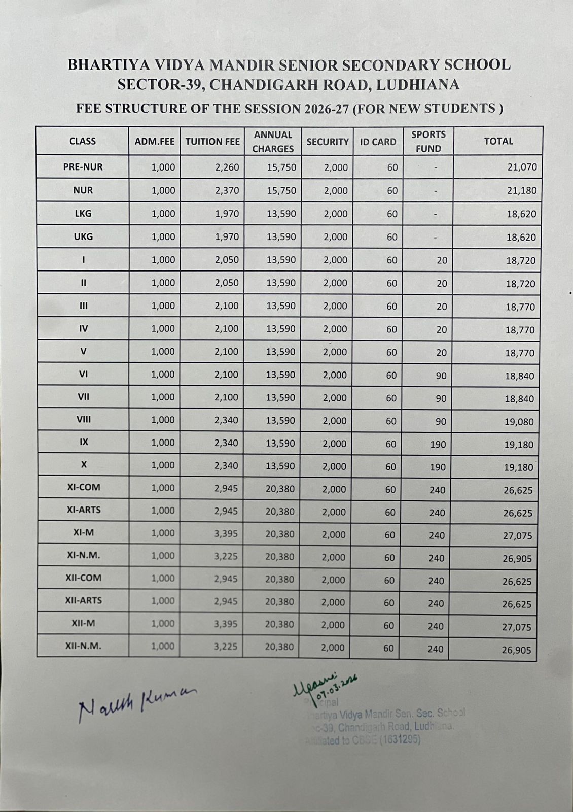 Fee Structure 2026-27
